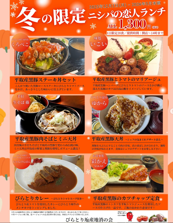 平取町内6つの飲食店にて「ニシパの恋人ランチ(2025冬)」の提供がはじまりました。