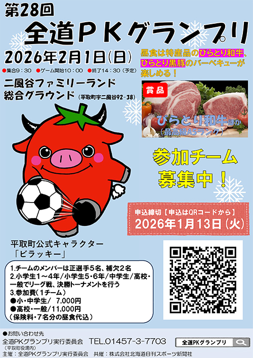 問合せ先:全道PKグランプリ実行委員会(平取町役場内)